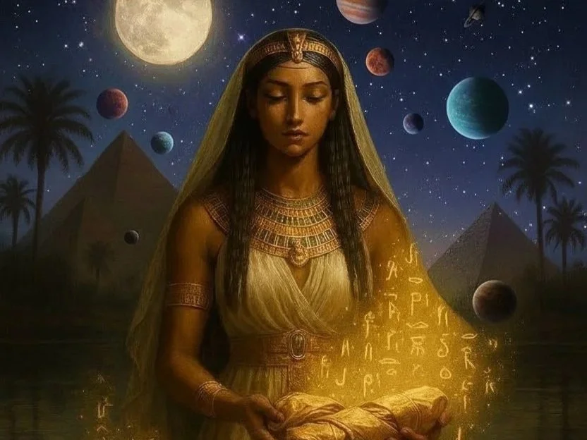 The daughter of Egyptian parents, she was raised in a home steeped in politics, religion, psychiatry, and psychology, where conversations of the world’s structures and the soul’s depths intermingled at the dinner table. Long before she recognised her inherited oracular gifts, she undertook a rigorous path of learning and service: first as a teacher, then a writer; then a photographer, then a jewellery designer and maker, then as a transformation coach; later as a sex and relationship therapist; and ultimately as an esoteric and evolutionary astrologer.